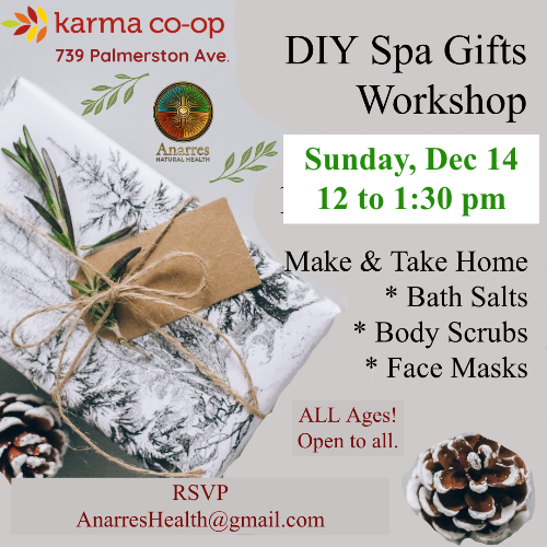 WHERE: Karma Food Cooperative, 739 Palmerston Ave. (Barton and Karma Lane) in The Members' Room or the picnic table in good weather!